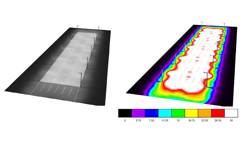 التكوين الاساسي: تركيب مصابيح انارة الشوارع قوة 180 واط على جانبي الطريق، الفراغ بين الاعمدة هو 25متر والارتفاع هو 8 امتار.