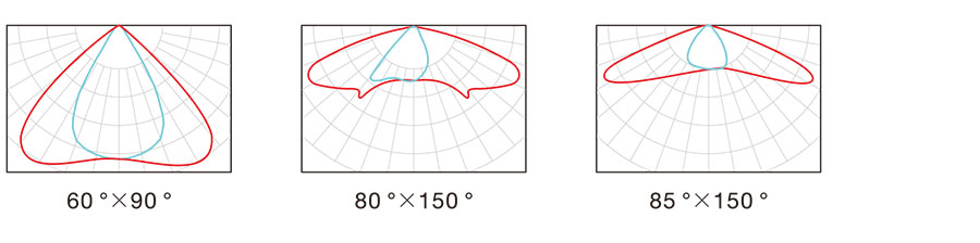 PC-Linse, Lichtdurchlässigkeit > 90 %, Entflammbarkeitbewertung: UL94-V0; 60° × 90°, 80° × 150°, 85° × 150° optionaler Abstrahlwinkel.