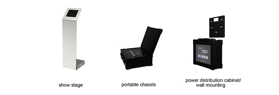 Um den Anforderungen der unterschiedlichen Anwedungen gerecht zu werden, ist die doppelseitige Hauptsteuerung mit 4 verschiedenen Installationsmethoden entworfen: Showbühnen, tragbares Chassis, Verteilerschränke, Wandmontage.