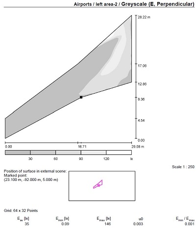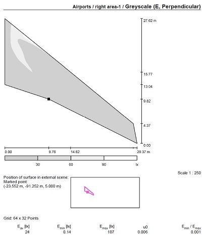 Abmessungen des Standorts: Flughafen Wartungsbereich, Länge: 228. 6 m, Breite: 89.25 m, Installationshöhe 25 m.