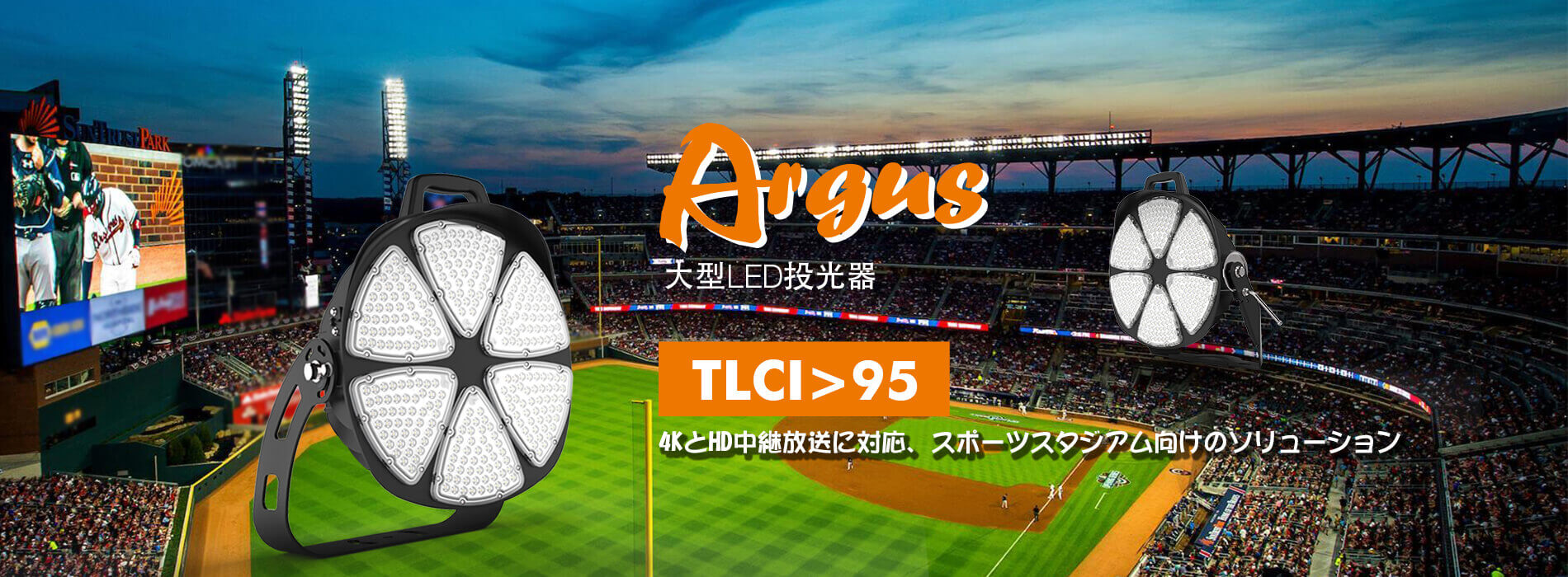 ArugusシリーズのLED大型投光器は屋外スポーツ照明のための理想的なソリューションです。サッカー場、野球場、フィールドホッケー場など、あらゆるアウトドアスポーツスタジアムに4KとHD中継放送対応方法を提供、テレビとライブ視聴者に最高の視聴体験を与えます。