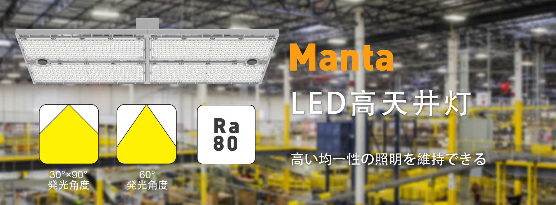 Manta LED髙天井灯は作業場所、倉庫、体育館、ガソリンスタンド、スーパー、車庫などの所に適用している。
