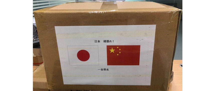 “山川異域、風月同天”、永遠の隣国である日本も新型肺炎のショックを受けました。弊社がマスクを送ろうとしていますが、物資の配送問題にぶつかりました。しかし、弊社が最後にさまざまな困難を乗り越え、2020年3月16日、弊社が寄付した初回の450枚のマスクが成功に日本まで届きました。YAHAMと4年間の引き取り関係を保つ藤原社長が中国語の“謝謝”を手書きして感謝の気持ちを表しました。